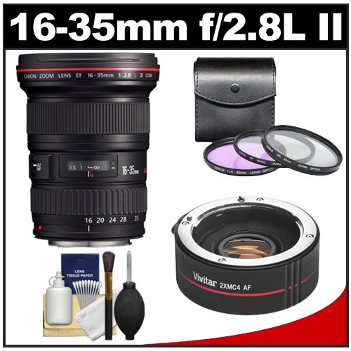 Canon EF 16-35mm f/2.8 L II USM Zoom Lens with 2x Teleconverter (=16-70mm) + 3 (UV/FLD/CPL) Filters + Cleaning Kit for EOS 60D, Overviews.
